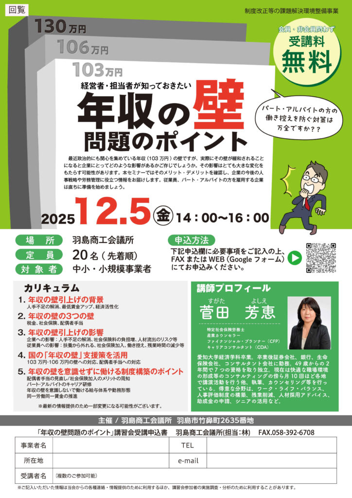 R7.12.5「年収の壁問題ポイント」講習会のご案内